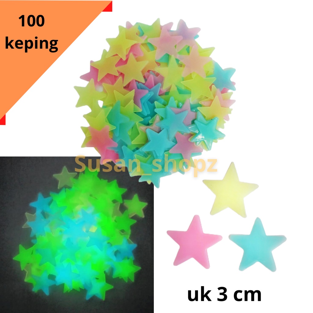 Jual Glow In The Dark 100pcs Ukuran 3cm Bintang Stiker Dinding 50gr Indonesia Shopee Indonesia